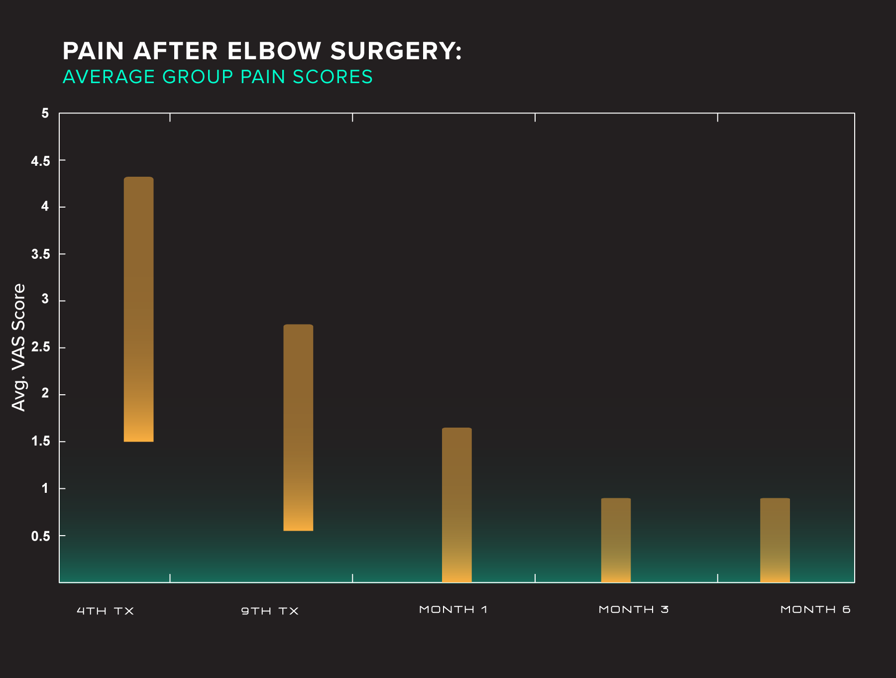 Prior to this case series of patients undergoing epicondylitis surgery the author had evaluated a random group of eight patients from 2006 to 2011 from the patient records that had also had the above mentioned surgery and had been referred by their orthopaedic surgeons for pain control and improved mobility.